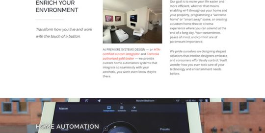 Bushwackers2022-05-10T01:11:28+00:00Project Brief Custom Web Design - premieresystemsdesign.com Premiere Systems Design was looking for a website design to portray the home automation they offer with applicable brochure downloads per service and at the same time, keep a clean easy to read look. The design team at Promptweb came up with an eye-catching visual presentation of [...]